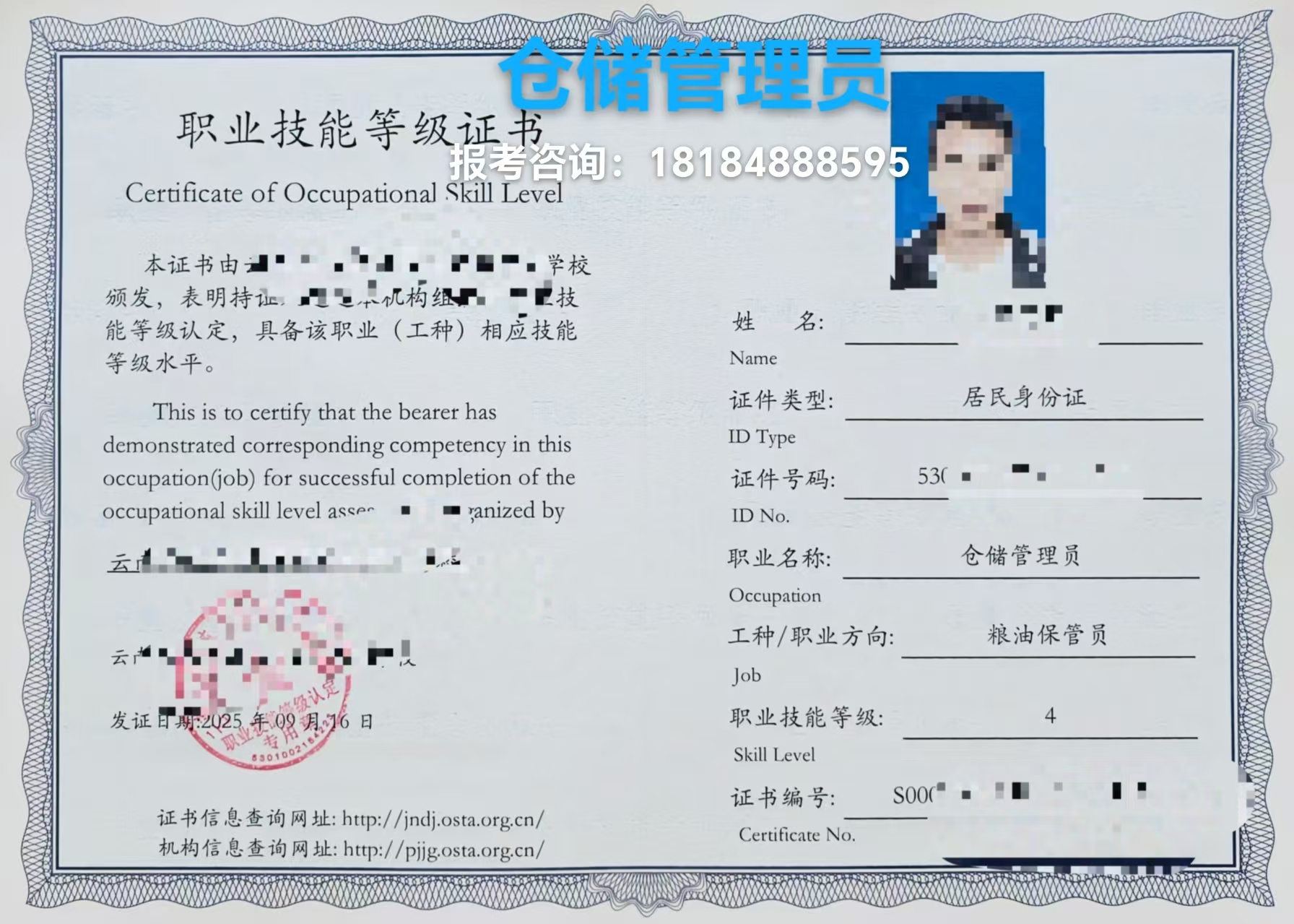 发证机关:人社备案第三方评价机构职业技能等级证证书查询:http://jndj.osta.org.cn/